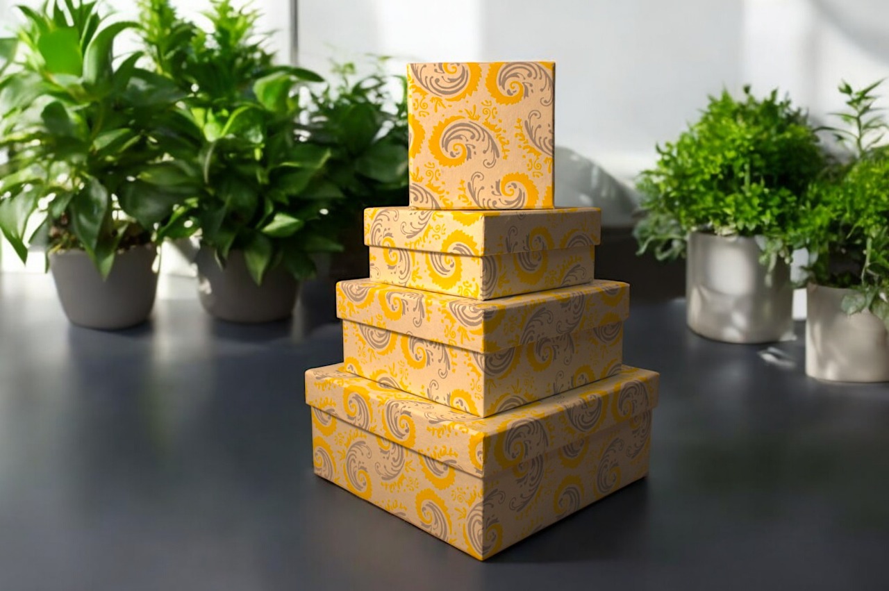 Premium Handmade Square Box – Paisley Yellow (sold as set of 4)