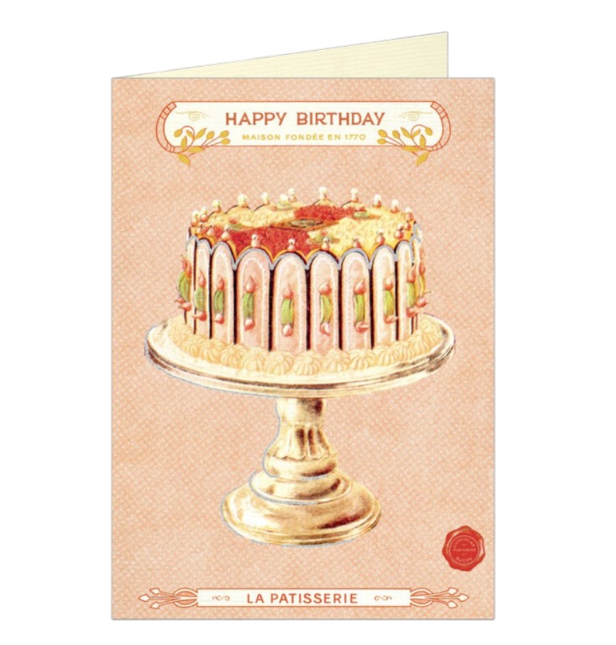 A Beautiful cake birthday greeting card features an image or illustration of a beautifully decorated birthday cake, often rich and colorful, symbolizing celebration, sweetness, and joy. This type of card captures the essence of birthday festivities and the special treat that cake represents, making the recipient feel cherished and ready to enjoy their special day. (Blank Inside)