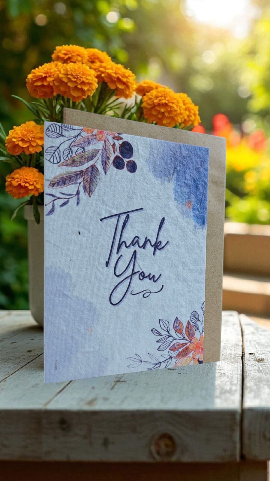 Our eco-friendly, plantable greeting cards come with seeds of wildflowers (Marigold plant) placed in them, so the recipient can plant the card and watch it blossom. The fact that this card is usually composed of recycled paper encourages sustainability by providing a zero-waste substitute for traditional cards. The seeds can be planted without risk because they are frequently non-invasive and non-GMO.