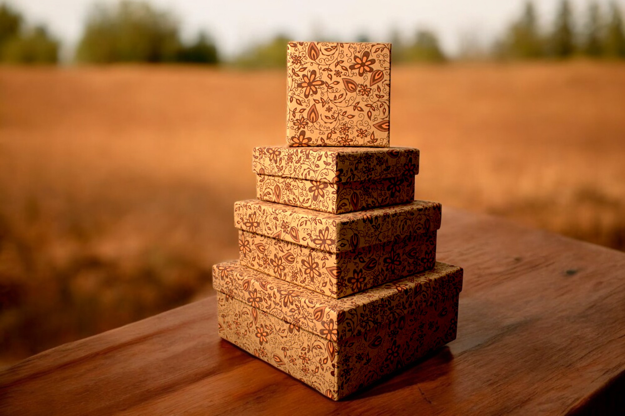 Premium Handmade Square Box – Floral Vine Brown (sold as set of 4)