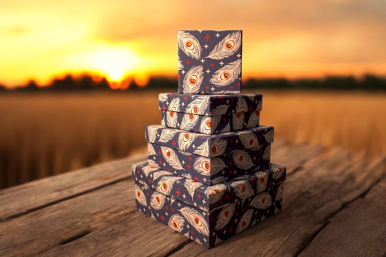 Premium Handmade Square Box – Peacock Feather (Sold as set of 4)