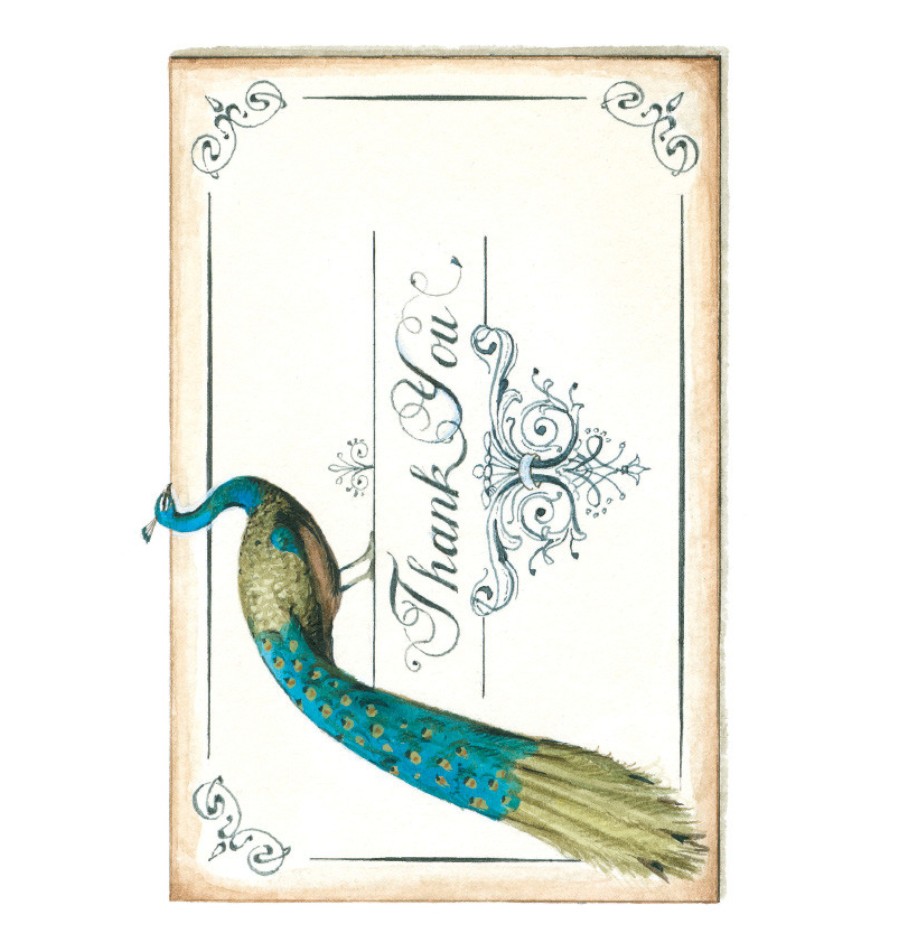 Peacock Thank You Greeting Card – A beautifully designed card featuring an elegant peacock with vibrant details, paired with a graceful “Thank You” message. Its vintage-inspired style makes it a perfect way to express gratitude with charm and sophistication.